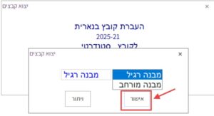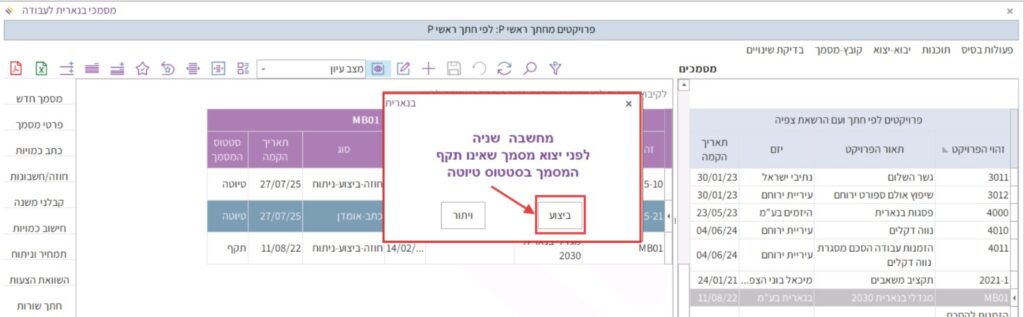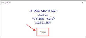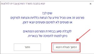 שימו לב: אם מופיעה התרעה לגבי יצוא קובץ שנמצא בסטטוס טיוטה, ללחוץ על “ביצוע”.