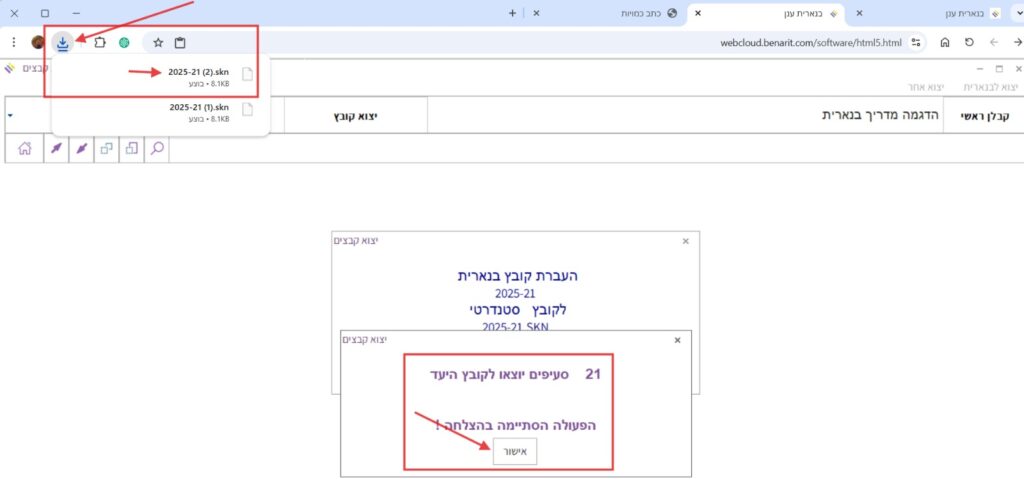 7. מופיעה הודעה על מספר הסעיפים שיוצאו לקובץ משהב”ש. יש ללחוץ על “אישור”.