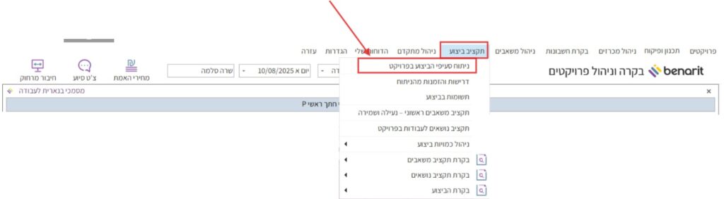 במסך הראשי להיכנס ל”תקציב הביצוע” > “ניתוח סעיפי הביצוע בפרויקט”: