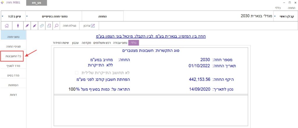להגדיר את נתוני החוזה, ולאחר מכן ללחוץ בצד שמאל על הכפתור “כל החשבונות”: