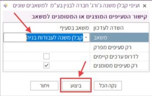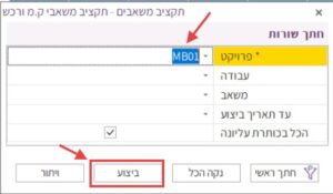 בשדה “משאב” לבחור את המשאב שאליו רוצים לשייך את הסעיפים, וללחוץ על “ביצוע”: