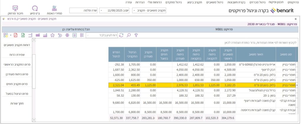 לאחר שביצענו את כל השלבים הנ”ל, ניתן להפיק את הדוח כדי לראות את ההשוואה בין התקציב הראשוני, לבין התקציב בפועל לבין הניצול התקציבי.
