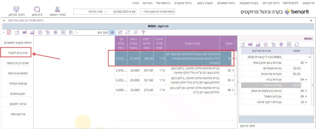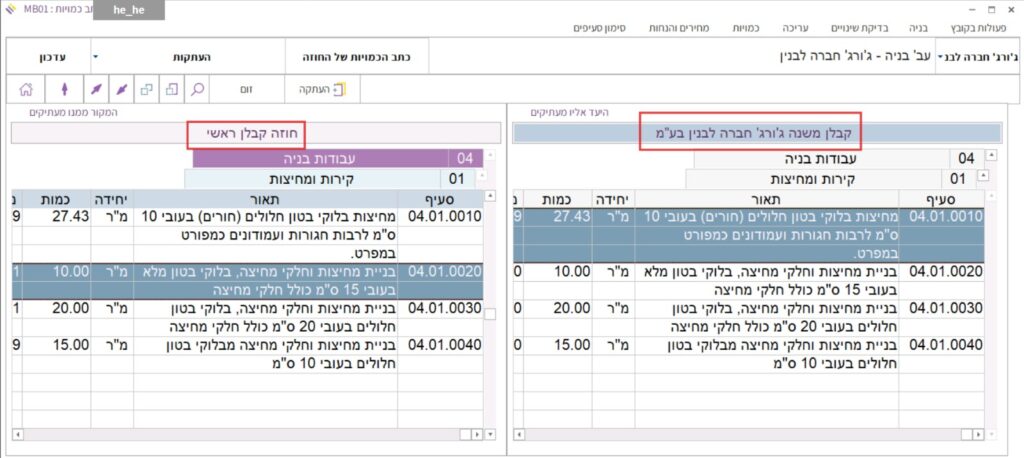 ב. בתוכנת “תקציב ביצוע” לנתח את סעיפי החוזה הראשי למרכיבים.