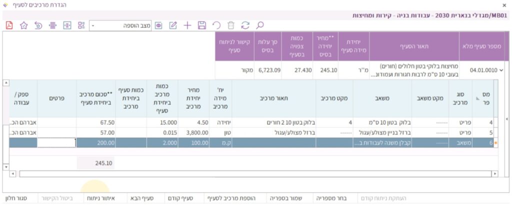 עומדים על סעיף שרוצים לנתח, ולוחצים על הכפתור “מרכיבים לסעיף”: