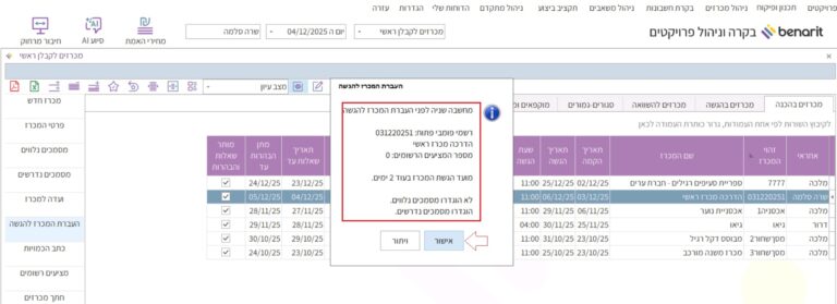 3. לאחר לחיצה על “אישור” מתקבלת הודעה עם פרטי המכרז המלאים. אם הכול תקין, יש ללחוץ על “אישור”: