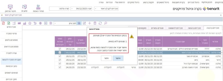 2. אם חסרים נתונים תתקבל על כך הודעה. בלחיצה על “אישור” ניתן להמשיך על אף הממצא, או ללחוץ על “ויתור” – כדי להשלים את החסר: