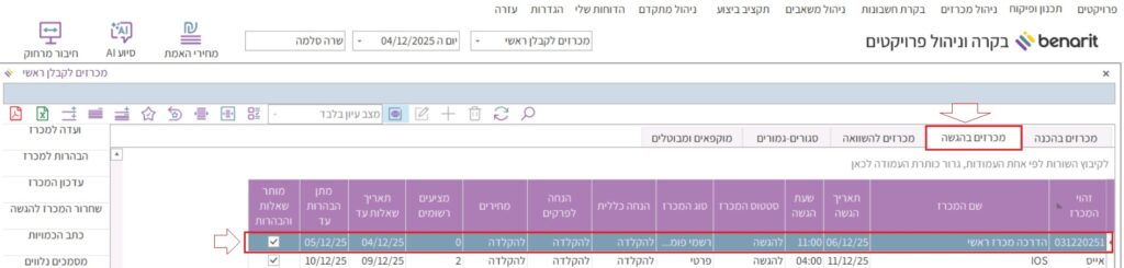 כל עוד המכרז שיצרנו נמצא בסטטוס “מכרזים בהכנה”, קבלנים לא יכולים להגיש הצעות מחיר למכרז במערכת המכרזים בענן של בנארית. כדי שאפשר יהיה להגיש הצעות מחיר, על המכרז להיות בסטטוס: “מכרז בהגשה”.