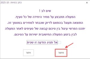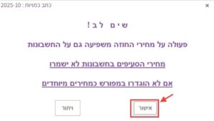 שימו לב: אם מופיעה הודעה לגבי עיגול מחירים, ללחוץ על “אישור”: