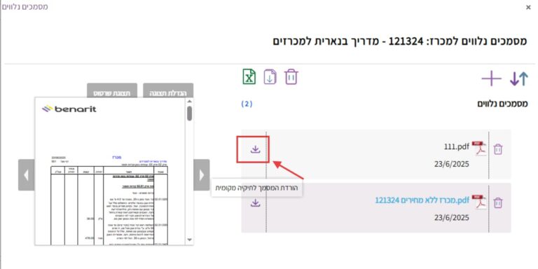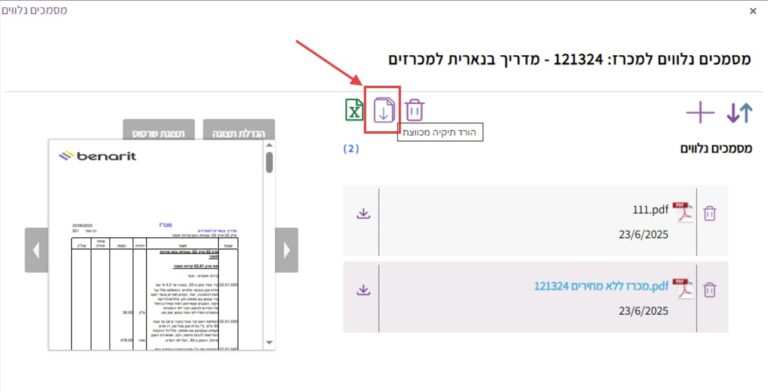 10. להורדת כל המסמכים הנלווים אל תיקיה מכווצת, לוחצים על סמל ההורדה שמעל: