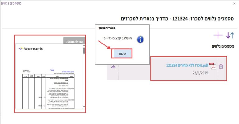 3. לוחצים על “אישור” בהודעה על הוספת מסמכים חדשים: