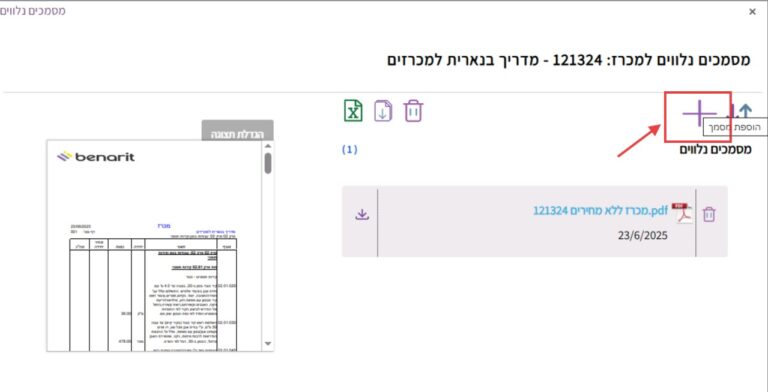 6. כדי להעלות קובץ נוסף יש ללחוץ שוב על הכפתור “הוספת מסמך”: