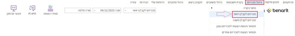 1. במסך הראשי של בנארית להיכנס לתפריט “ניהול מכרזים” > לבחור “מכרזים לקבלן ראשי“: