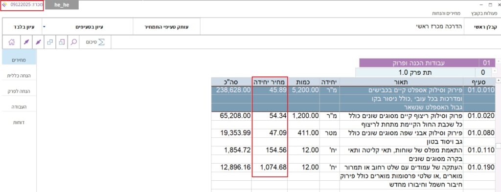 1.2 נפתח המסך של כתב הכמויות.