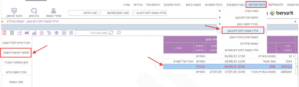 7. ללחוץ בסרגל השמאלי על הכפתור “שיגור ההצעה”:
