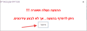 4. מופיעה הודעה על כך שמחירי ההצעה וההנחות יעברו מהתמחור אל מכרזית-ענן. ללחוץ על “אישור”: