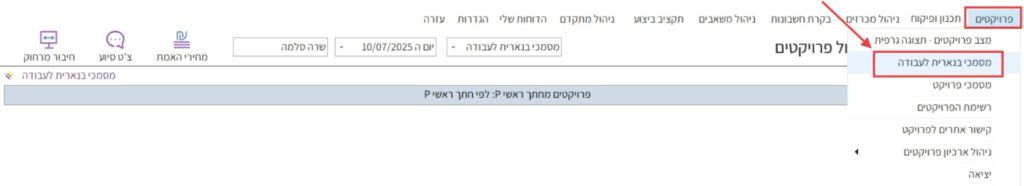 כדי לוודא שאתם נמצאים במסך “מסמכי בנארית לעבודה”, יש להיכנס לתפריט “פרויקטים” במסך הראשי של התוכנה, ולבחור “מסמכי בנארית לעבודה”: