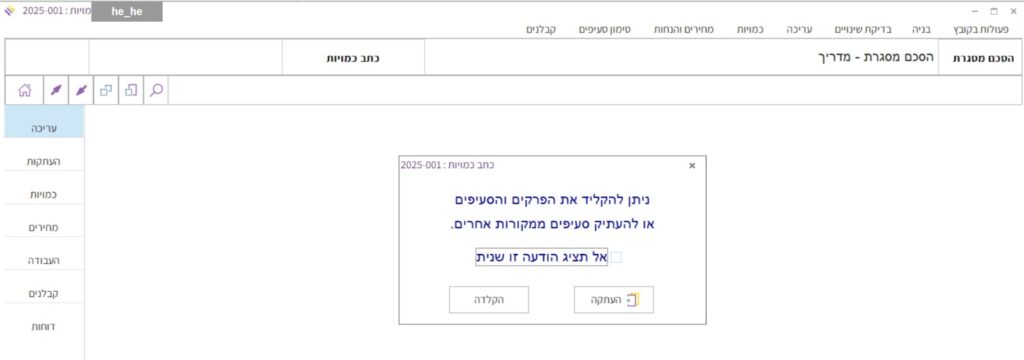 5. נפתח המסך של כתב הכמויות של הסכם המסגרת: