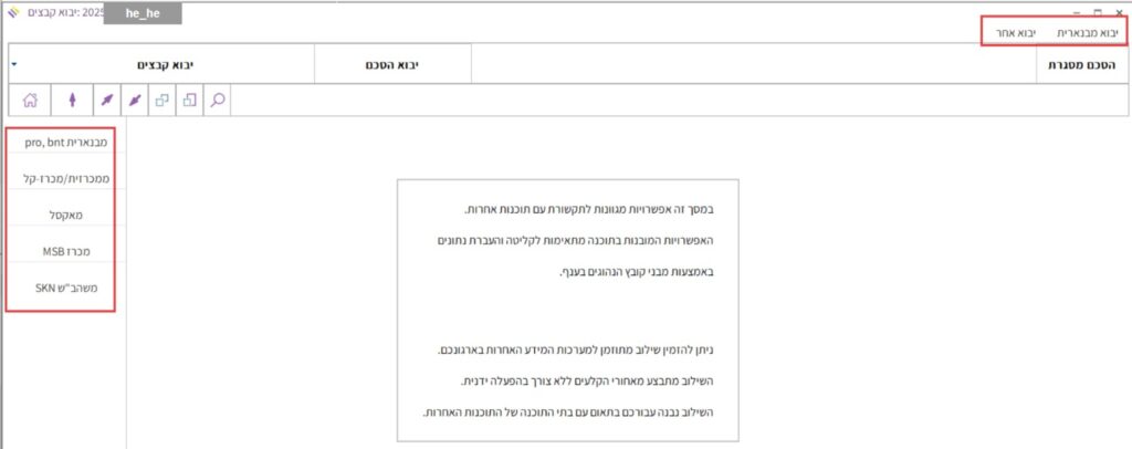 3.2 נפתח המסך “יבוא קבצים”. במסך הזה יש לבחור את הפורמט שממנו רוצים לייבא: