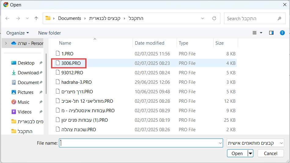 3.3 התוכנה מזהה תיקיה המכילה קבצים בפורמט שנבחר, ניתן לבחור תיקיה אחרת דרך סייר הקבצים. כעת יש לבחור את הקובץ שמכיל את סעיפי ההסכם: