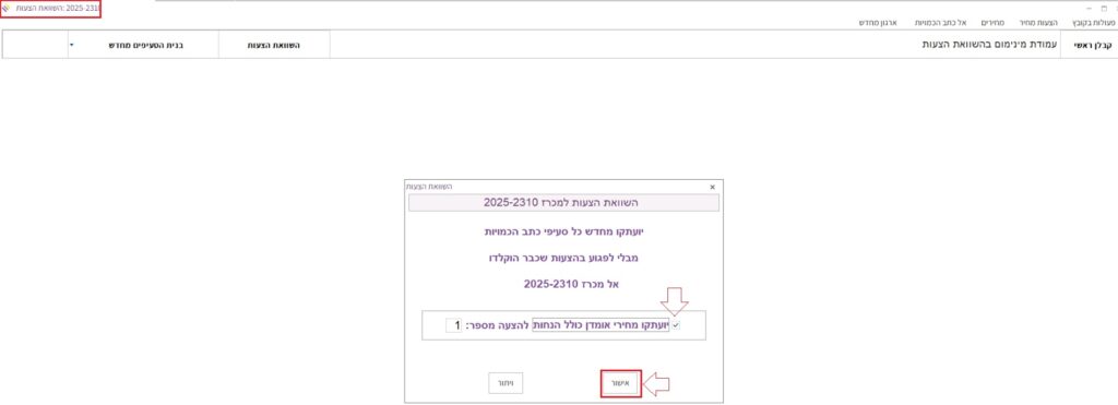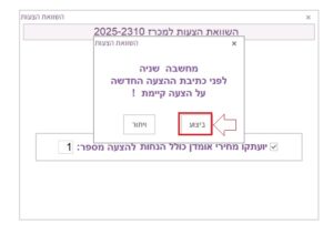 4. מתקבלת חלונית “מחשבה שניה” לפני כתיבת הצעה חדשה על הצעה קיימת. ללחוץ על “ביצוע” ואחר כך בחלונית הבאה על “אישור”: