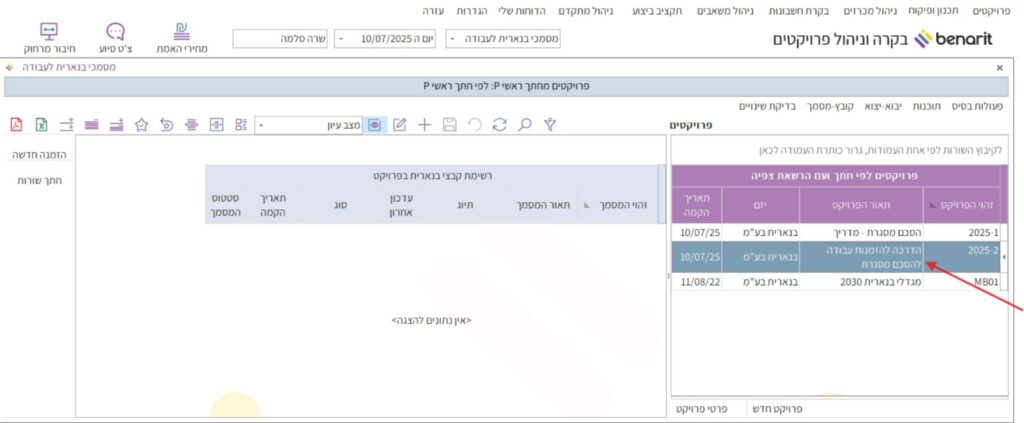 1. במסך הראשי של בנארית לגשת בצד ימין למעלה לתפריט “פרויקטים” > ולבחור “מסמכי בנארית לעבודה”: