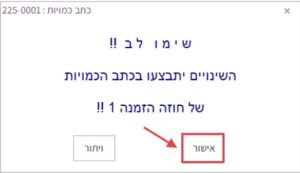 1. לאחר שלוחצים על הזמנת עבודה חדשה, מתקבלת הודעה על יצירת חוזה הזמנה. לוחצים על “אישור”: