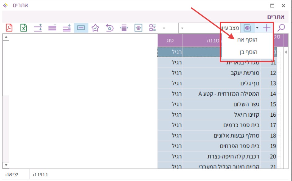 אם האתר הרצוי לא מופיע ברשימה אפשר להוסיפו בחלונית של רשימת האתרים באמצעות כפתור ההוספה (הפלוס) שנמצא בסרגל הכלים העליון. לוחצים על כפתור ההוספה > ובוחרים “הוסף אח”: