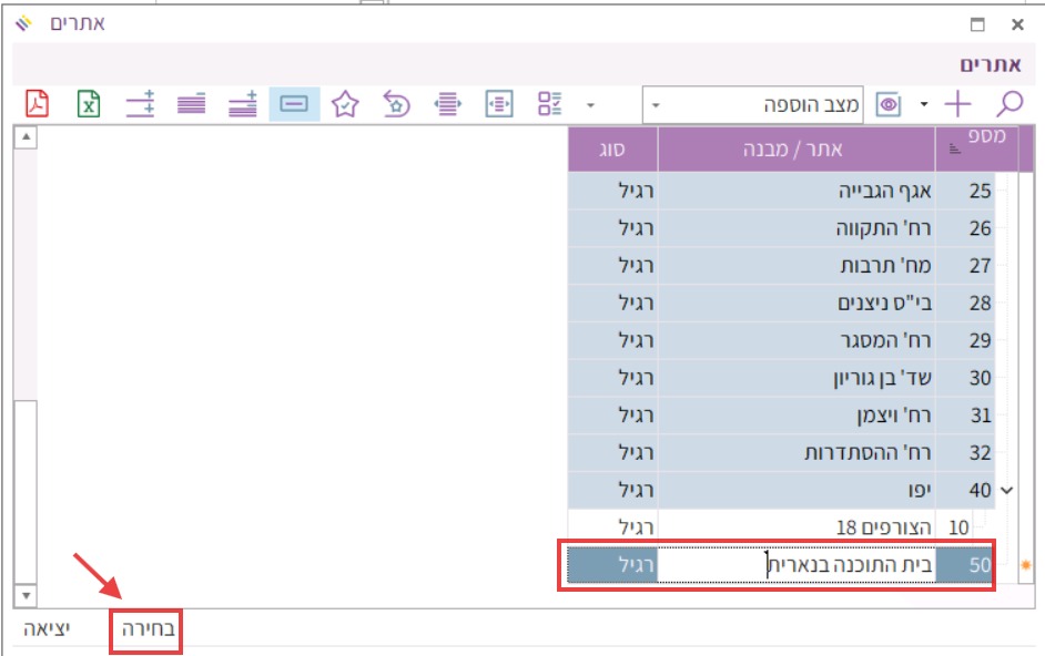 ואז בשורה החדשה שנוצרת מגדירים את האתר החדש ולבסוף לוחצים למטה על “בחירה”: