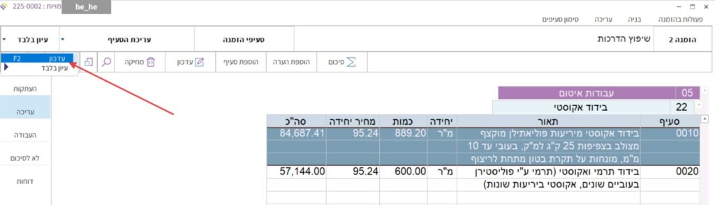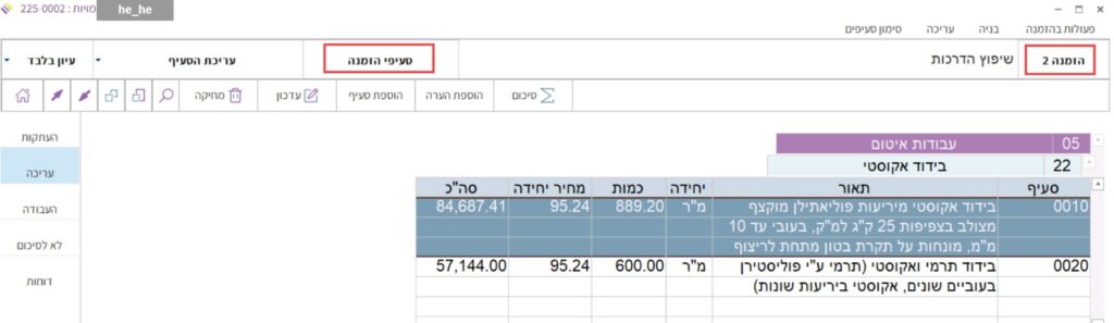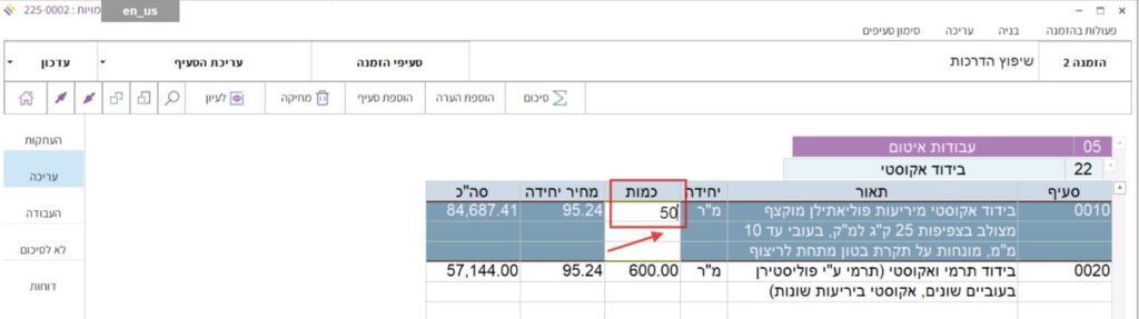 יש להיכנס לסעיף הראשון בכתב הכמויות של הזמנת העבודה: