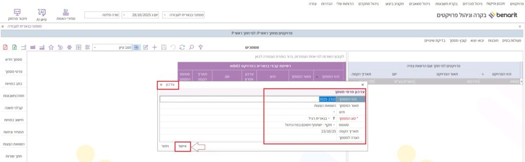 2. בחלונית שנפתחת להכניס את השינויים הרצויים, ולסיום ללחוץ על “אישור”:
