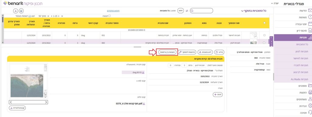 1. כדי לבצע את ההשוואה יש ללחוץ על התוכנית ברשימת התוכניות, ואז, בחלונית של התוכנית בשורת המידע ללחוץ על “השוואה בין גרסאות”: