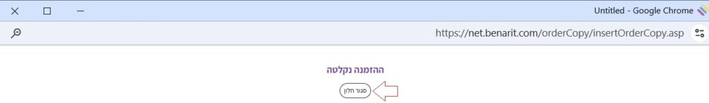 תופיע הודעה על כך ש”ההזמנה נקלטה”. לוחצים על “סגור חלון”: