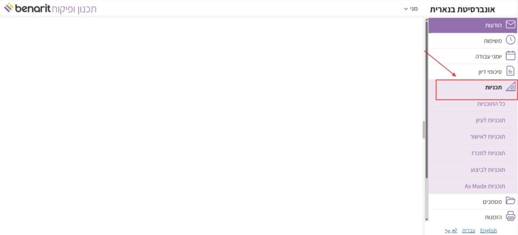 1. בתפריט הראשי ללחוץ על “תוכניות“: