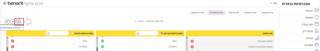 2. לוחצים על על הכפתור “רשימת משתתפים” כדי לראות את רשימת המשתתפים המשויכים לתפקיד שבחרנו: