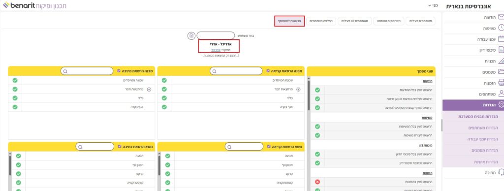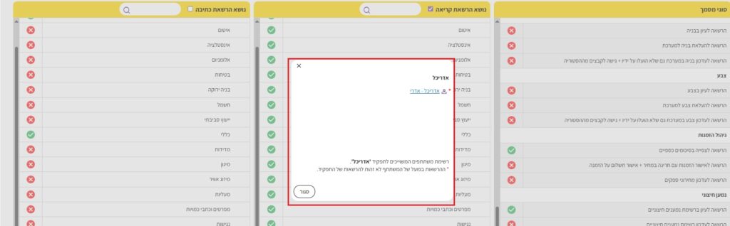 שימו לב: ייתכן שההרשאות ברמת המשתתף יהיו שונות מההרשאות שהוגדרו לתפקיד, בעקבות שינויים בהרשאות המשתתף שהוכנסו ידנית.