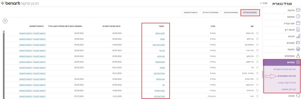 1. כשנכנסים ל”הגדרות” > “הגדרות משתתפים” > ללשונית “רשימת משתתפים”, רואים לגבי כל משתתף בעמודה “תפקיד” סוג התפקיד שאליו הוא משוייך :