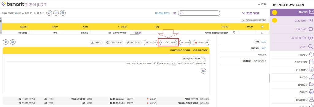 כדי לשלוח מענה אל שולח ההודעה ואל כל הנמענים המכותבים לה יש לבצע את הפעולות הבאות:
