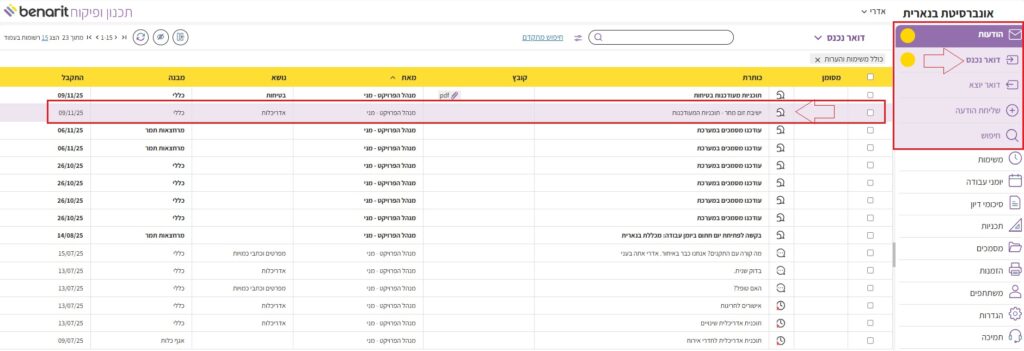 1. מהתפריט הימני לבחור ב”הודעות” > “דואר נכנס”.