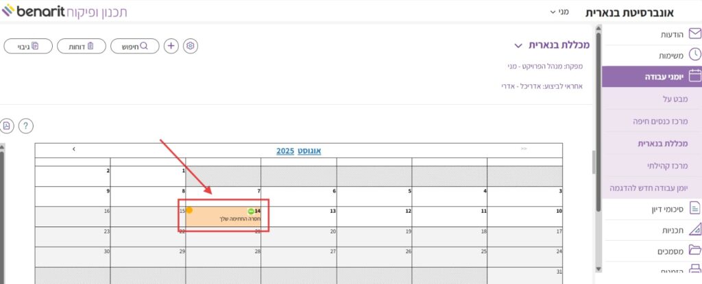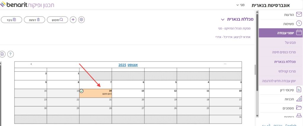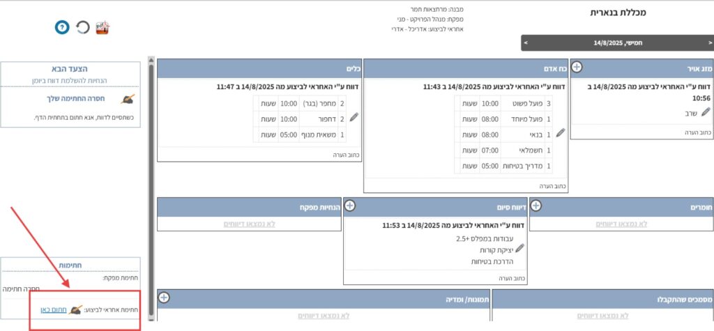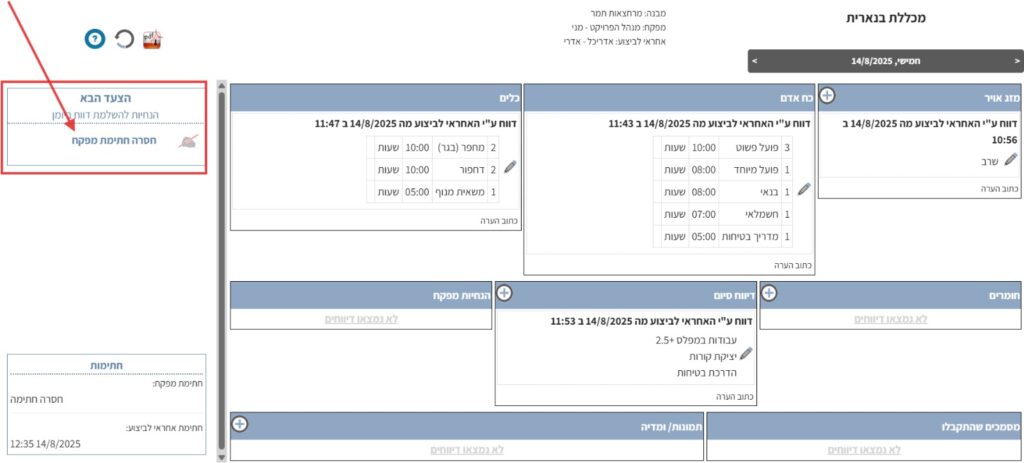 6. אני אכנס כעת לבנארית תכנון ופיקוח עם שם המשתמש של המפקח כדי להוסיף את חתימתו ובכך לסגור את היום.