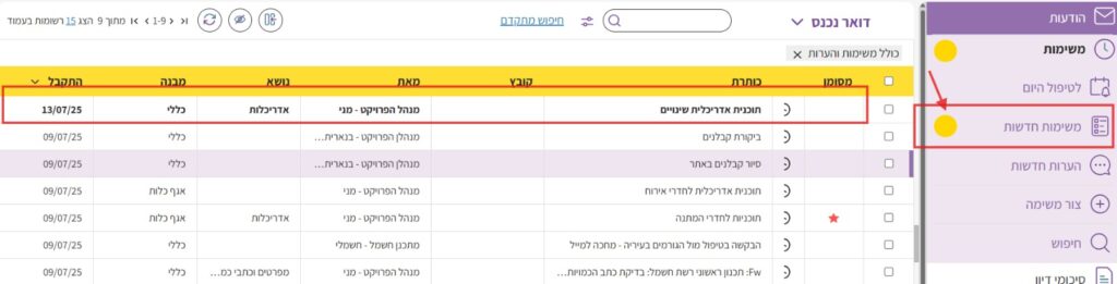 החיווי ל”חדש” יופיע גם תחת תפריט המשימות, בכפתור “משימות חדשות”: