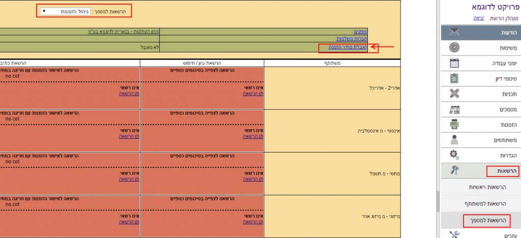 3. ללחוץ על השורה “הגבלת מחיר הזמנה”, להקליד את סכום ההגבלה (תקרת ההזמנה).