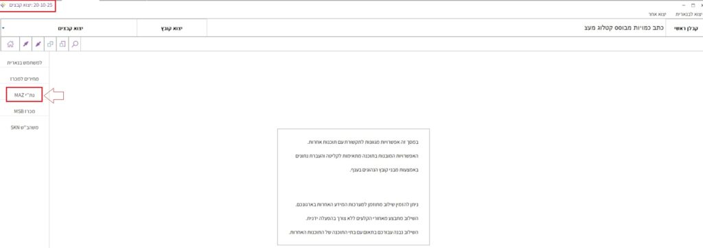 2. במסך “יצוא קבצים”, בסרגל השמאלי ללחוץ על  “נת”י MAZ”: