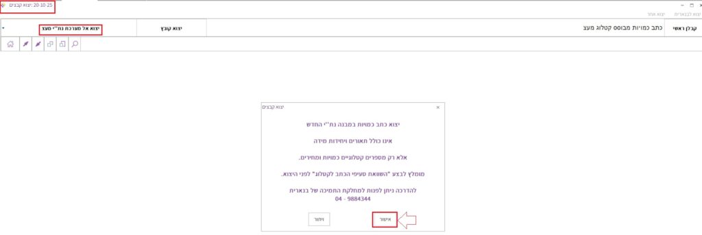 (אם מופיעה התרעה לגבי יצוא מקובץ בסטטוס טיוטה, לוחצים על “ביצוע”)