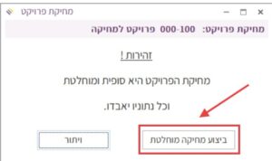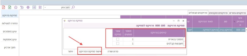 להשלמת פעולת מחיקת הפרויקט ללחוץ על הכפתור “אישור מחיקת הפרויקט”.