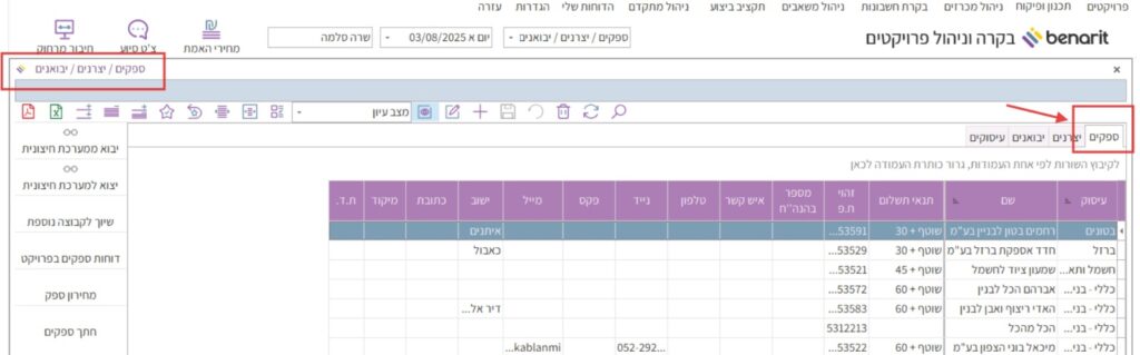 2. נפתח המסך “ספקים/יצרנים/יבואנים” בלשונית “ספקים”:
