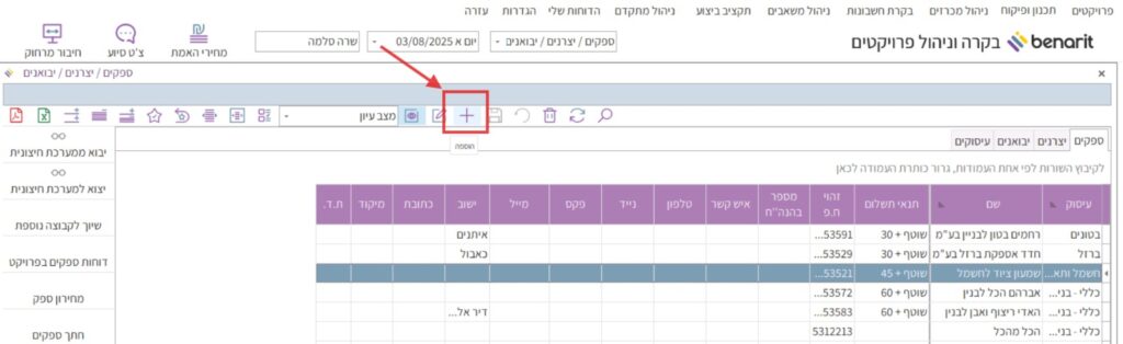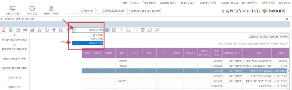 אם כבר יש ספקים ברשימה, על מנת להוסיף ספק חדש יש לעבור תחילה למצב “הוספה”, באחת מהדרכים הבאות: