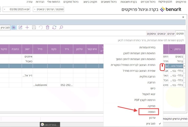 (3) לחילופין, אפשר גם לעמוד על אחד הספקים הקיימים ברשימה, ללחוץ לחיצה ימנית בעכבר ולבחור “הוספה” מהתפריט: