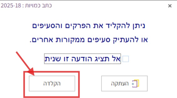 שימו לב: אם קופצת חלונית ששואלת אם ליצור את כתב הכמויות ב”העתקה” או ב”הקלדה” לבחור באפשרות הרצויה.