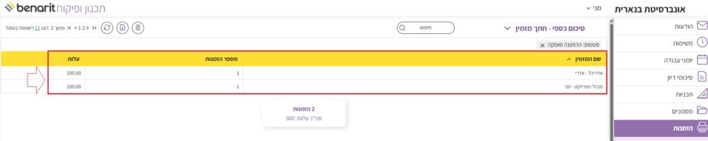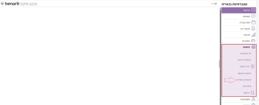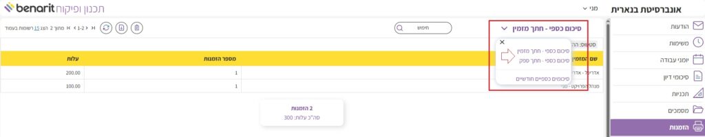 1. בתפריט הראשי לבחור “הזמנות” > “סיכומים כספיים“: